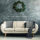This elegant design, displays a familiar, text word, commonly used, in Holiday phrases, in a Digitalized, window-paned, pattern-with a blended mix, of taupe, blue, black, gray, and white.