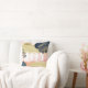 This stylish and modern holiday throw pillow features a word "JOY" in white on abstract brush strokes, shapes, and patterns in pink, navy blue, faux gold, and black. Personalize it for your needs. You can find matching products at my store.