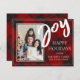 Joy Red Black Plaid Personalized Rustic Christmas Holiday Card