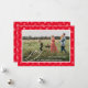 Joy Red Frame Berry Pattern Photo Christmas Holiday Card