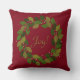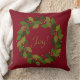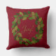 Joy! | Rustic Red Christmas Wreath Throw Pillow