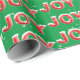 Christmas red JOY text on green background with snow caps and snowflakes.