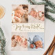 Modern Christmas theme birth announcement card featuring a hand written script text that says "joy to our world" with 4 photos. This is a birth announcement card for the holiday seasons! Add your pictures, birth stats, and a message! The background is cream.