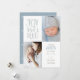 This birth announcement Christmas card features the phrase Joy to our World in hand lettering accented with stars alongside two photos of your new baby and plenty of room to add in your newborn's name birthday and birth details.