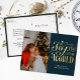 Joy to the World Blue Gold Script Photo Modern Foil Holiday Postcard