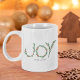 Add a festive touch to your holiday home kitchen decor with this adorable seasonal coffee mug. Cup has the text Joy to the World and the word Joy is made out of pretty greenery and berries.