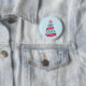 A button with a fun and whimsical illustration. Typography design in the shape of a Christmas tree with some christmas ornaments and a star on top. Inside are the words: Joy to the world.