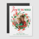 Beautiful green and red holly wreath with mistletoe and berries personalized with your family photo featured in the center. Happy and colorful holiday magnet with JOY TO THE WORLD written in pretty red and green typography above your festive family picture.