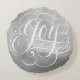 Joy to the World Luxury Silver Christmas Script Round Pillow