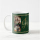 Joy to the world 4 photo collage holiday mug Deep rich holiday green background. Add your favorite family pictures to personalize. Add current year. Elegant coffee mug. So simple, yet chic.