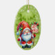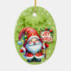 A cute oval ornament possibly for a child, with a Santa standing in front of a green tree