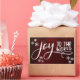 This pretty design makes a great addition to your Merry Christmas cards and wishes. It features a white graphic of "joy to the world" set up with two complementary fonts. Surrounding the words are three trios of white snowflakes. The word "joy" is rendered in a pretty script font with a long flourish on the end of the last letter, making room for the all-caps, bold, casual "to the world" setup. Behind these overlays is a red and black photo depicting bokeh light flares which adds to the celebratory feel.