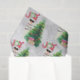 Patterned tissue paper with a funny illustration. A cute llama wearing black sunglasses and a red santa hat. Standing behind a Christmas tree with festive presents. The word Joy written above his head in a colorful holiday font. Silver bokeh background. Whimsical and fun Christmas themed design.