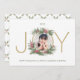 JOY Watercolor Christmas Wreath Custom Photo Gold Holiday Card