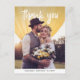 This trendy thank you card features your wedding photo on the front. Modern white typography adds a stylish touch.