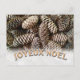 Rustic pine cones set off this classic, elegant design along with custom typography wishing a Joyeux Noel.