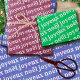 Joyeux Noël written in white on Christmas Wrap in three different Christmas colors: red, green and blue.