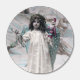 A vintage French Christmas postcard from the public domain. It features a girl dressed as a Christmas angel carrying gifts.