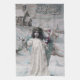 A vintage French Christmas postcard from the public domain. It features a girl dressed as a Christmas angel carrying gifts.