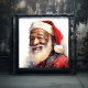 This captivating watercolor depicts Black Santa Claus in a moment of quiet reflection. He stands alone amidst a pristine winter landscape, snowflakes gently falling around him. The soft light of a full moon bathes the scene in a cool, ethereal glow.