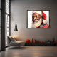 Santa's figure exudes both strength and serenity. His red suit stands out against the snowy backdrop, while his white beard and warm smile create a sense of kindness. A weathered sack filled with toys rests at his feet, a silent promise of Christmas joy to come.