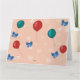 Celebrate birthdays with the "Joyful Cat Birthday Card," featuring an adorable cat adorned with a blue bow, holding two balloons on her tail, and surrounded by hearts on a light pink background. The cheerful illustration is paired with the sweet message: "A cat looking up with eyes so bright, wishing you joy and pure delight! 🌟🐱"