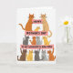This card shows a stacked arrangement of smiling cats on a white background, forming a friendly pyramid that feels like a group hug ❤️. The cats come in warm shades of russet, sunny yellow, deep brown, and soft gray, with bright eyes and gentle grins that suggest closeness and care. At the top, two taller cats lean slightly toward a smaller one between them, creating a tender, protective moment. Across the middle are three long, soft pink ribbons, each carrying part of the message, with the lettering centered and set in a darker contrasting color for easy reading. Lower tiers show groups of four and five cats posed around the ribbons, some lifting their paws as if waving while others sit calmly shoulder to shoulder. The simple outlines and even lighting keep the focus on their affectionate expressions and the way they cluster together like a supportive circle 🌼. The pink ribbons stretch horizontally through the center, and the cats frame them on every level with rounded ears, curved tails, and small rosy accents.