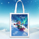 A sweet Christmas tote bag with a happy elf sliding down a snowy winter hill with glee! Fill this reusable bag with gifts and holiday treats!