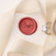 Before the wax hardens, gently and evenly press the wax seal stamp into the melted wax, ensuring it's centered.