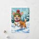 Joyful Corgi Dog Bouncing in Snow with Pom Pom Holiday Card