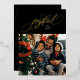 Joyful elegant one photo black gold Christmas Foil Holiday Card