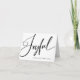 This elegant black and white Christmas holiday card says "Joyful" in modern black script calligraphy. The background is simple and white.