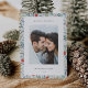 Share holiday greetings with these photo Christmas cards featuring your favorite photo set on a background of holiday flowers and botanicals in festive red and green on light sky blue. An editable message area lets you customize your holiday greeting in modern lettering. Add your family name or names beneath.