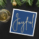 Joyful in a faux gold foil script on these blue napkins are stylish for any Christmas holiday occasion or to give a gift. MATCHING items in our store.