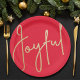 Joyful in a faux gold foil script on these red paper plates in 2 sizes, are stylish for any Christmas holiday occasion or give as a hostess gift. MATCHING items in our store.