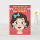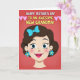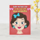 Designed with a stylized portrait of a feminine figure, this card centers on her shoulders-up illustration with a tender, welcoming smile that suggests close family affection ❤️. Her dark brown hair is swept into a soft wave, topped with a sky-blue bow, and she wears matching flower-shaped earrings that add a sweet, friendly touch. Large blue eyes and rosy cheeks give her face an upbeat, caring look, like she’s sharing a quiet, happy moment with someone she loves. The background is a rich reddish-pink field with faint diagonal texture that keeps the focus on the figure while adding depth. Across the top, the message “HAPPY MOTHER’S DAY TO AN AWESOME NEW GRANDMA!” is set in chunky lettering, with white words alongside sunny yellow accents for contrast. Small pink hearts sit near the headline, echoing the affectionate tone, and a 🌼 detail can be spotted among the cheerful color choices. The overall palette mixes warm pinks with cool blues so the portrait stands out clearly against the textured backdrop. The figure’s bright pink lips and the crisp heart shapes pop against the reddish-pink background.