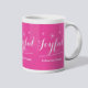 Joyful Holiday Gift Script Chic Hot Pink Christmas Coffee Mug, created by artist RjFxx *All rights reserved. #PersonalizedHolidayCoffeeMug #CustomizedChristmasCoffeeMug #ZazzleMade