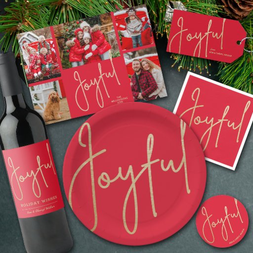 JOYFUL Holiday Wishes Gold Faux Foil Wine Label