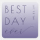 This wedding sticker features a clean and modern design with a gradient background transitioning from light lavender to deep purple. The phrase "BEST DAY ever" is prominently displayed in bold, uppercase letters paired with elegant cursive script, creating a joyful and celebratory mood. The layout is simple yet sophisticated, emphasizing the central message with ample negative space. Perfect for marking special moments, this sticker combines minimalism with whimsy, making it an ideal choice for weddings or other significant celebrations.