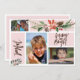 Joyful Merry and Bright photo collage blush floral Holiday Card