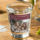 Designed with a rich burgundy accent, elegant modern typography, and a clean white photo frame, this festive shot glass showcases a favorite family photo while spreading holiday joy and gratitude. Perfect for Christmas parties, cozy gatherings, and seasonal celebrations, it adds a personal touch to every toast.
