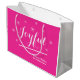 Joyful Merry Christmas Modern Custom Name Chic Pink Large Gift Bag. Stylish script in white on a beautiful hot pink background. Click personalize this template to customize it with your Family Name or your own name quickly and easily, printed on the front and back. Joyful Merry Christmas Modern Custom Name Chic Large Gift Bag. is part of the Joyful Pink Christmas Collection in this store. 30 Day Money Back Guarantee. Ships Worldwide Fast.