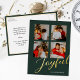 Joyful Modern Minimalist Green Gold Script Photo Foil Holiday Postcard
