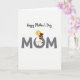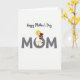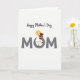 This design shows a sweet Mother’s Day scene on a bright white background, mixing big lettering with a cheerful child illustration ❤️. Near the top, “Happy Mother’s Day” appears in a flowing handwritten-style line in dark gray, centered above the main word. Along the bottom, “MOM” is set in large, thick charcoal-gray letters that stretch across the card. Inside the rounded “O,” a fair-haired child with sunny yellow hair and a light tunic curls in close, holding a small brown plush animal with a gentle face, creating a tender, affectionate moment. The child’s relaxed posture and warm smile suggest closeness and gratitude, as if sharing a quiet hug meant just for mom 👩. The simple color palette keeps the focus on the loving interaction while the strong letters give the layout a steady, grounded feel. The brown plush toy sits snugly against the child’s chest within the “O,” framed by the dark gray curve and the clean white space around it.