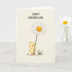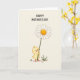 This card features a soft, muted cream background with a gentle textured look, setting a calm, affectionate scene. Near the center stands a small yellow feathered creature with a round body, a tiny open beak shaped like a shy smile, and pink blush on its cheeks, as if offering a sweet gesture to someone it cares about ❤️. It balances on slender orange legs while hugging a long green stem that reaches up to an oversized white flower, making the little figure look devoted and determined. The flower fills much of the upper area, with a warm yellow-orange center and many white petals outlined with simple lines for a tidy, friendly look. A few short dark green strokes at the bottom suggest little blades of grass, grounding the character like it’s standing in a quiet garden moment. Across the top, a short Mother’s Day message appears in dark lettering, centered and easy to read against the pale background 🌼. Subtle shading gives the character and flower a soft dimension without adding clutter. The large white petals arc outward above the creature, and the green stem angles up from its wings toward the upper half of the design.