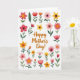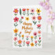 Designed with a bright white background, this Mother’s Day card centers a warm orange “Happy Mother’s Day!” message in flowing handwritten lettering. Around the words, a ring of watercolor-style flowers and leafy stems creates a garden-like frame that feels like a gentle hug ❤️. Soft pink petals mingle with sunlit yellows, cheerful oranges, and deep reds, while fresh green foliage threads between blossoms to suggest closeness and care. The arrangement looks naturally scattered yet balanced, like a bouquet set down with affection and a lingering glance from someone who adores her 👩. Smaller buds and layered, multi-petaled blooms add depth through subtle paint textures and slightly varied tones. The text sits in the middle with generous spacing, letting the floral border breathe while keeping the greeting easy to read. Tiny leaves and curved stems arc inward at the corners, guiding the eye back to the orange lettering.