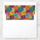 This wedding envelope liner features a vibrant, repeating floral pattern with stylized flowers in shades of teal, orange, pink, yellow, and white. The design showcases a playful and whimsical style, with clean lines and flat colors that create a modern graphic look. Perfect for adding a lively touch to your wedding stationery, this liner evokes feelings of joy and warmth through its cheerful color palette and dynamic arrangement. Ideal for those looking to infuse their special day with energy and positivity, this design is both eye-catching and inviting.