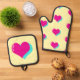 Joyful Neon Love Retro Vaporwave Hearts Fun Oven Mitt & Pot Holder Set
