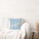 Joyful Pastel Blue Script Christmas Holiday Pillow. Simple and modern joyful wish in a white trendy script on a blue background.