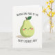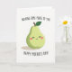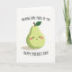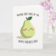 This greeting card features a cute, human-like pear centered on a calm off-white background, drawn in soft pale greens with a tender, friendly expression ❤️. Its eyes curve upward as if smiling at someone it adores, with a wide grin and rosy pink blush on its rounded cheeks that suggests warm affection. A small brown stem and a single deep-green leaf sit on top, adding a natural touch that feels gentle and caring. A faint gray shadow underneath grounds the pear while keeping the look light and airy. Near the top, rounded hand-drawn lettering in dark gray reads “NOTHING COME-PEARS TO YOU,” spaced comfortably above the character. Below the pear, the message “HAPPY MOTHER’S DAY!” appears in matching dark gray text, centered and easy to read, with a sweet, friendly tone 🌼. The fruit’s surface shows tiny white speckles and slightly darker green shading along the edges for extra texture and depth.
